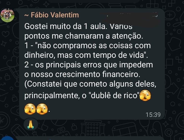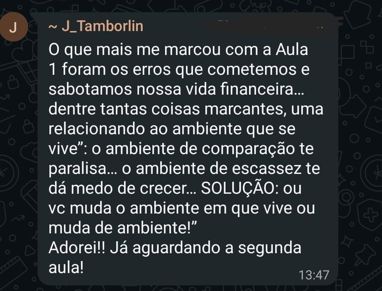 Travou em alguma aula? Não sabe por onde começar a planilha? Este é o nosso canal oficial de bastidores. Entre para trocar experiências com colegas que vivem a mesma realidade e receber áudios exclusivos meus e da Amanda complementando o conteúdo.