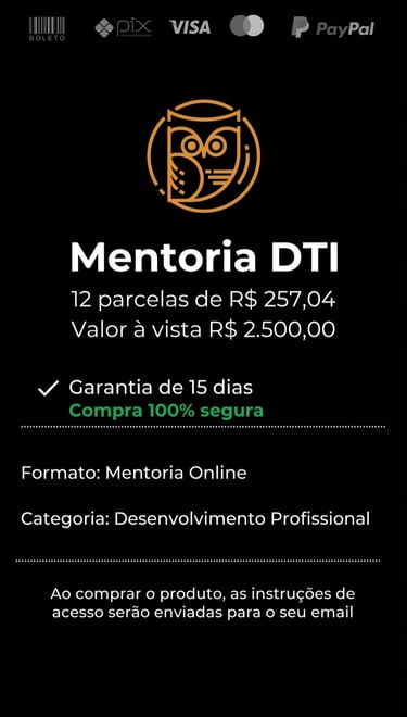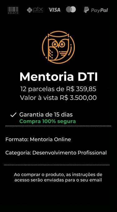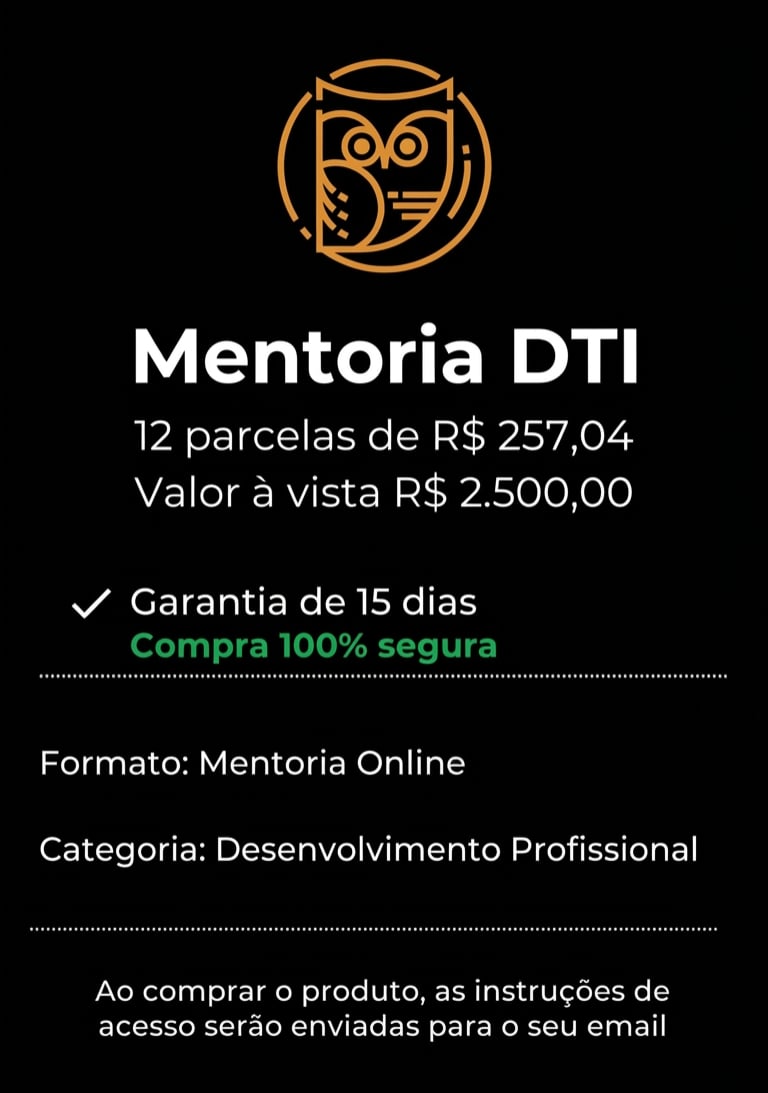 Primeiro, deixa eu te explicar o que a Mentoria DTI NÃO é: ela não é mais um curso online lotado de teorias chatas que você compra, sente culpa por não ter tempo de assistir e abandona na prateleira virtual. O mercado já está cheio de cursos assim.