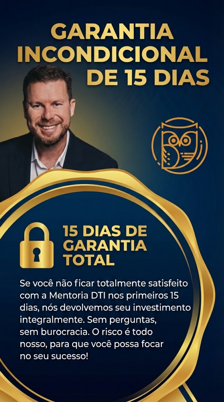 Se dentro das próximas duas semanas você achar que a Mentoria DTI não é para você, ou até mesmo se não gostar do tom da minha voz, não tem problema nenhum.