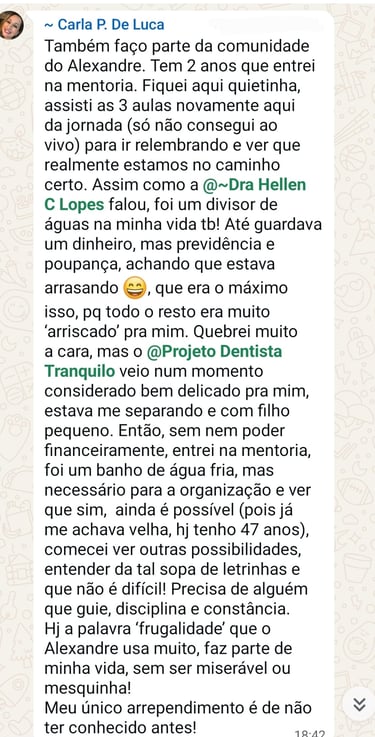 Foi assim que em 2021 nasceu o Dentista Tranquilo. Não foi planejado. Surgiu de uma necessidade real, de algo que eu mesmo passei e que via meus colegas passando todo dia. E percebi que precisava ser algo próximo, com acompanhamento de verdade.